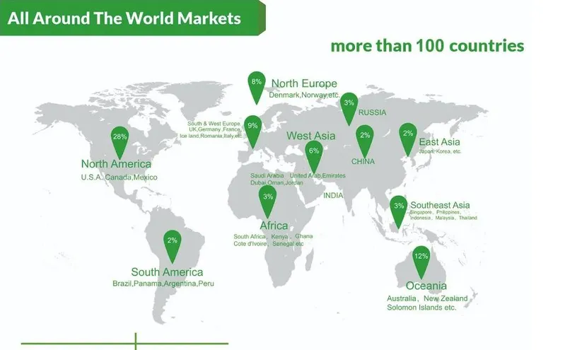 Nuestro mercado •Caja de cartóN exportan cargas a los Estados Unidos, JapóN, Australia, Nueva Zelanda, Europa, Sudeste de Asia, Oriente Medio, logrando muy buena